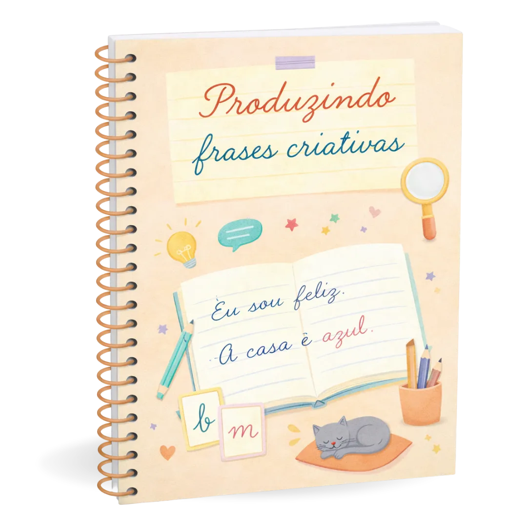 O material foi pensado com uma proposta visual infantil e envolvente, deixando o momento da escrita mais interessante e menos cansativo.