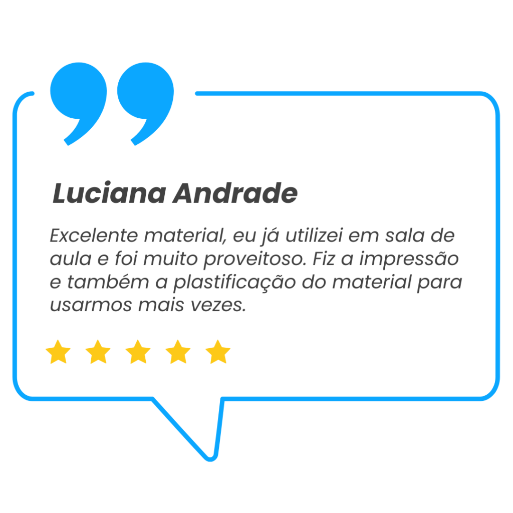 Material pronto para baixar, imprimir e já aplicar na próxima aula, poupando tempo do professor em planejamentos.